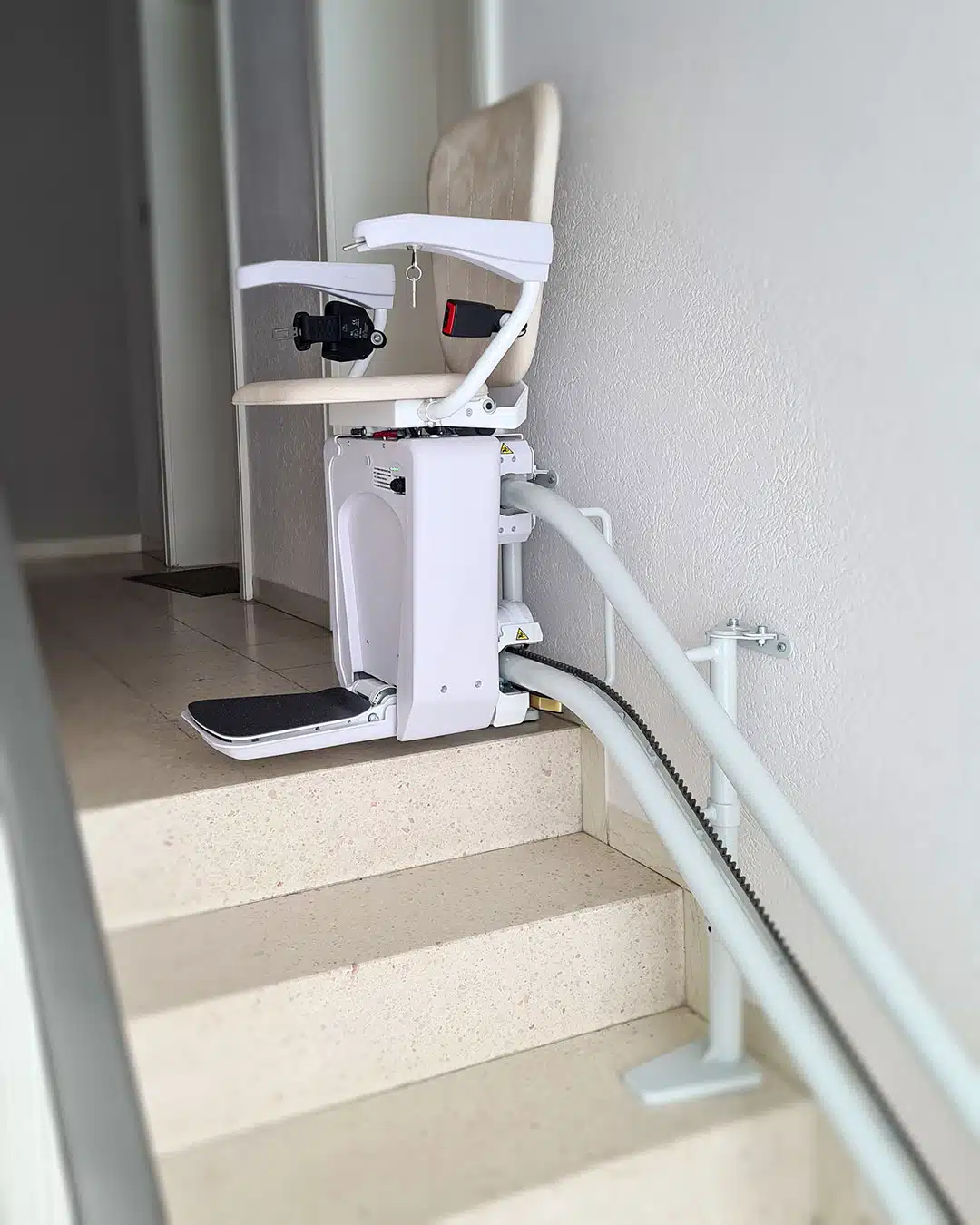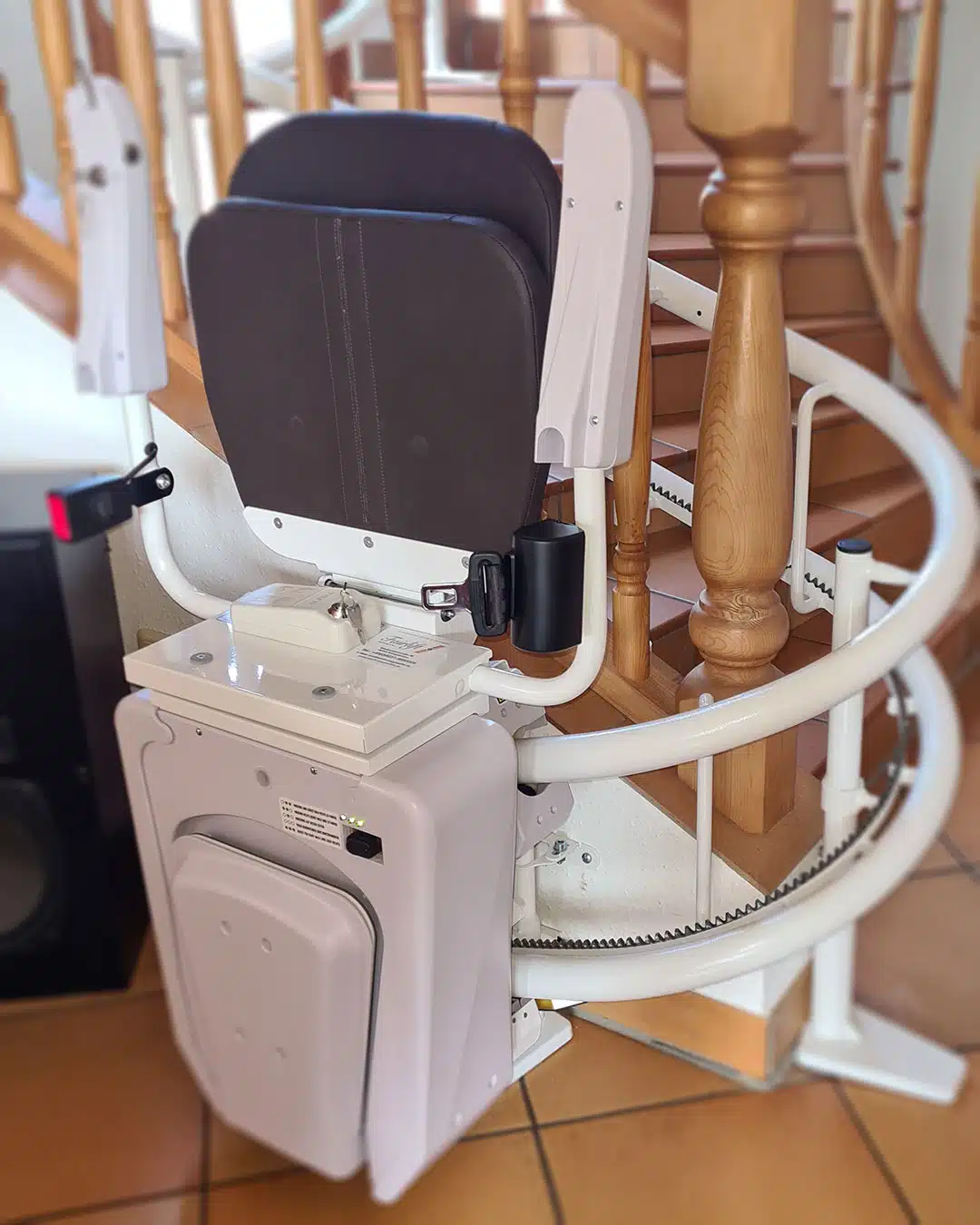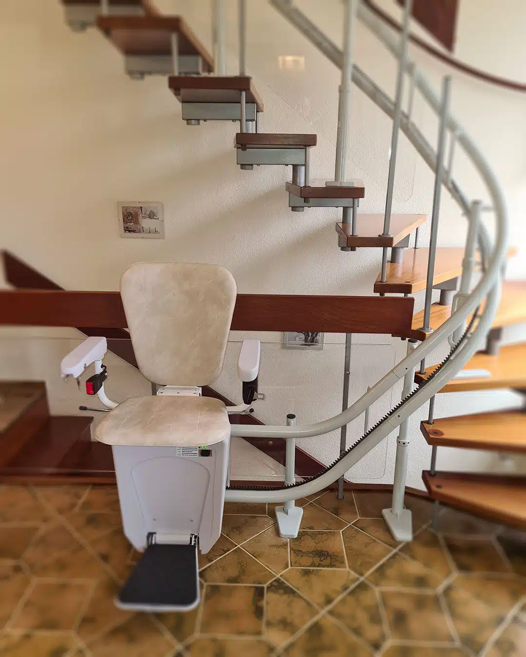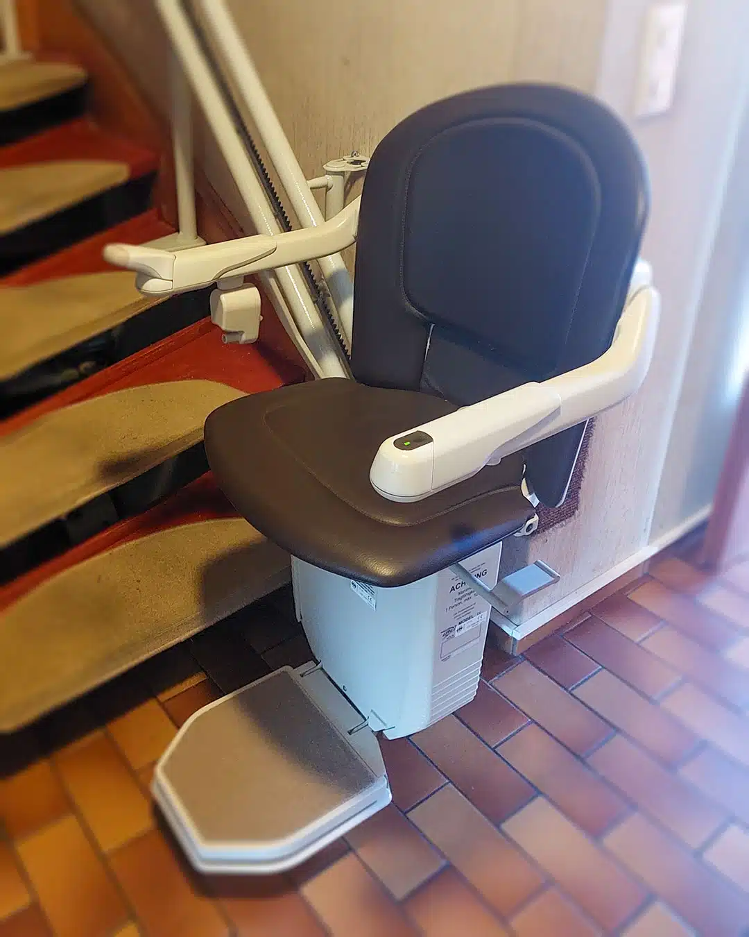 Perfekt an die Treppe angepasst, sorgt dieser Lift für mehr Sicherheit und Selbstständigkeit im eigenen Zuhause.