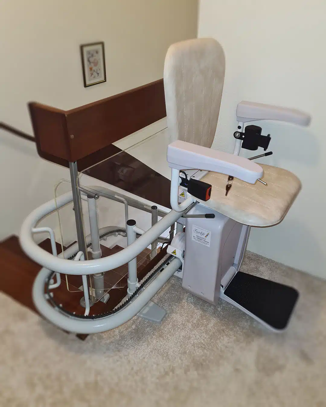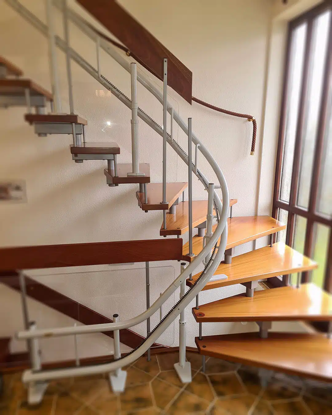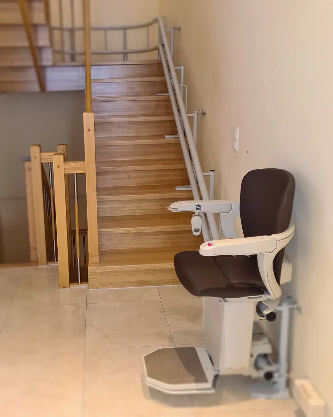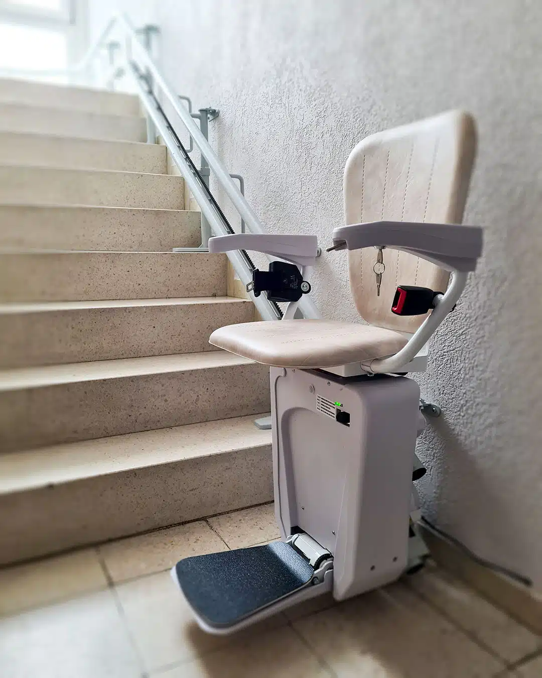 Perfekt an die Treppe angepasst, sorgt dieser Lift für mehr Sicherheit und Selbstständigkeit im eigenen Zuhause.