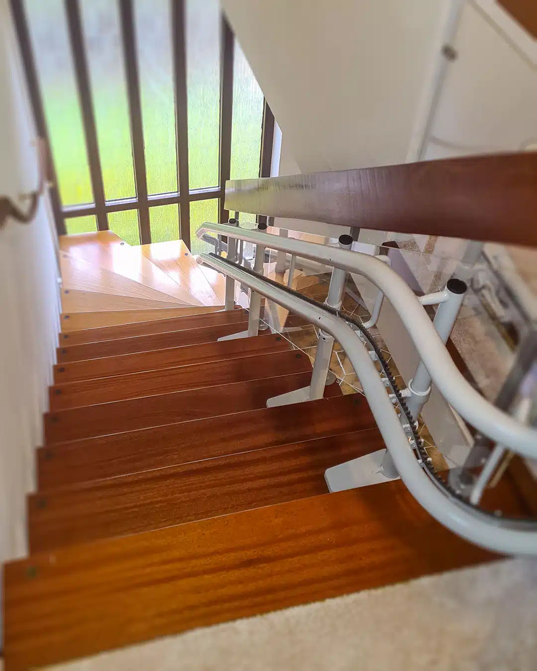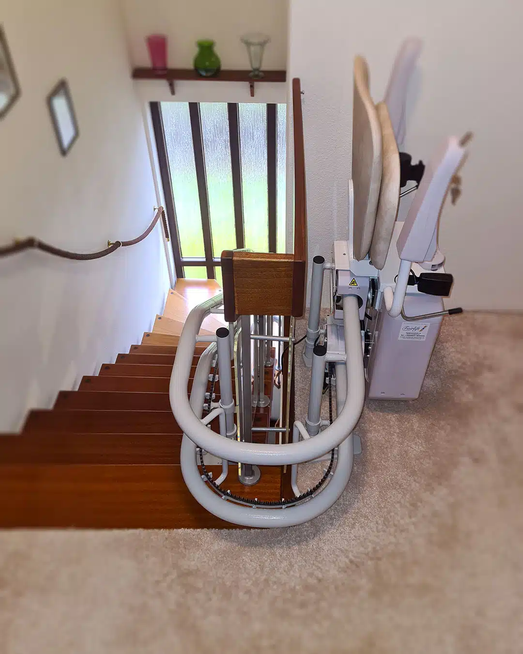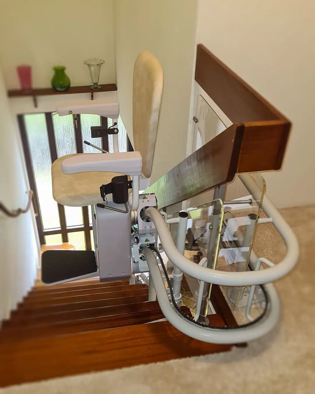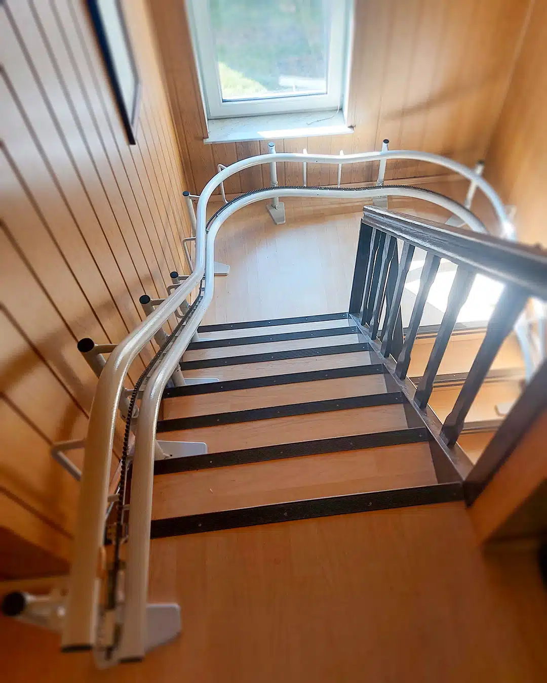 Perfekt an die Treppe angepasst, sorgt dieser Lift für mehr Sicherheit und Selbstständigkeit im eigenen Zuhause.
