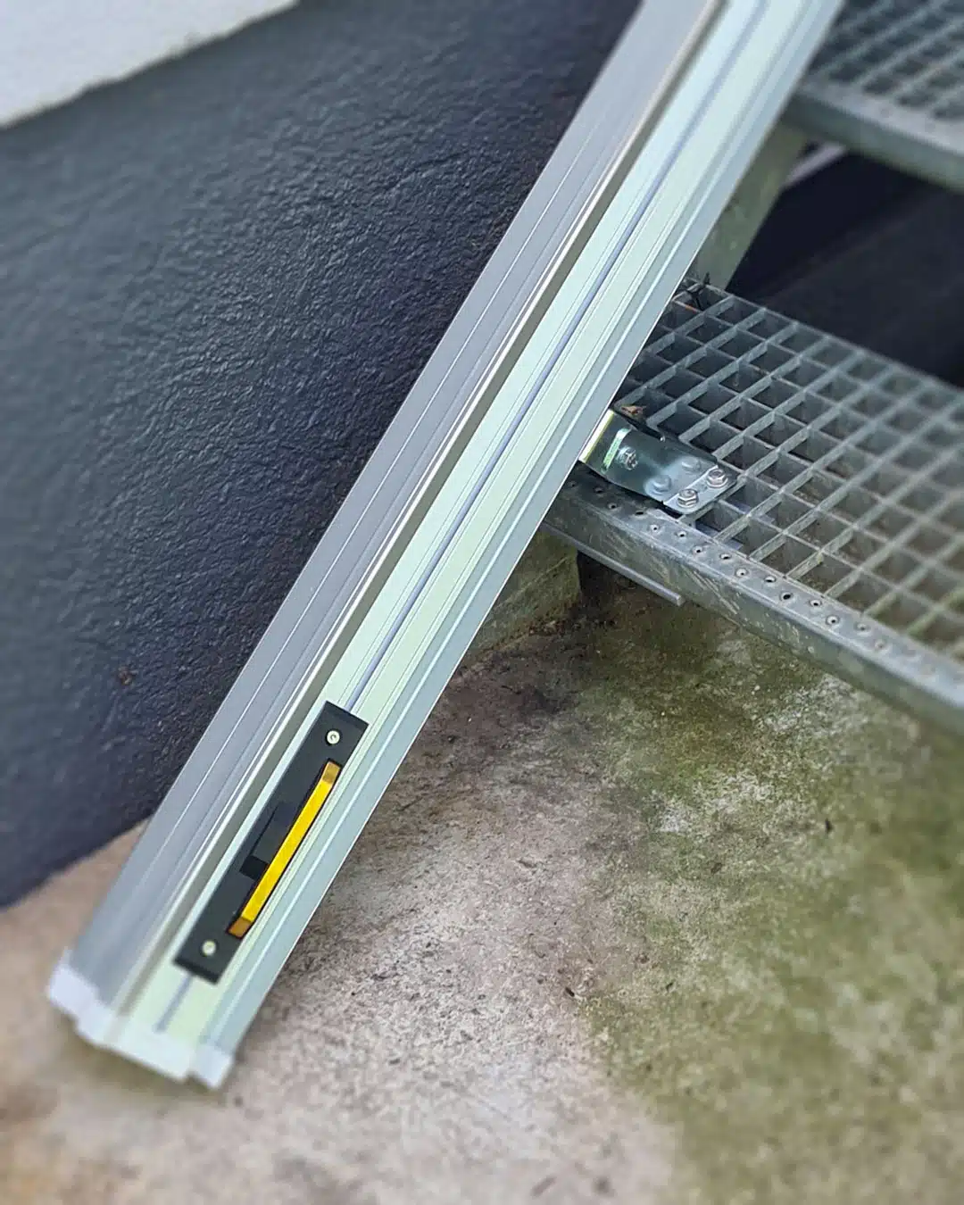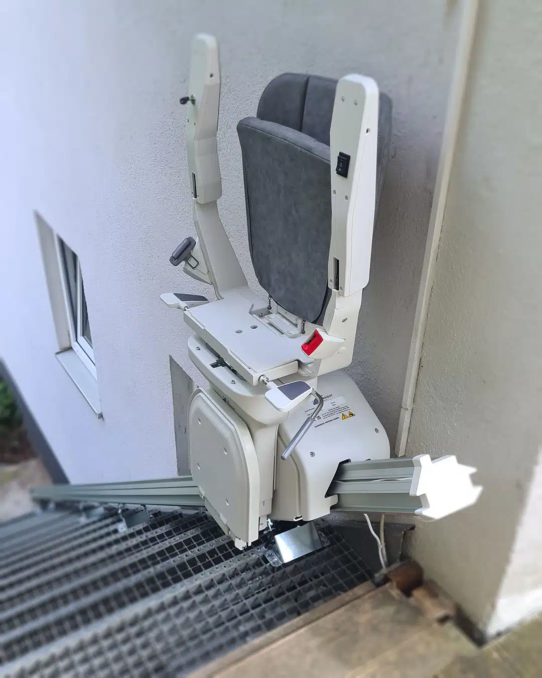In 85229 Markt Indersdorf haben wir einen Platinum Ergo STRAIGHT Außenlift installiert. Die fast 6 Meter lange Schiene wurde mit nur zwei Schienenteilen auf einer Gitterrosttreppe montiert. Die verdeckte Zahnstange schützt vor Witterung und sorgt für eine dezente Optik.