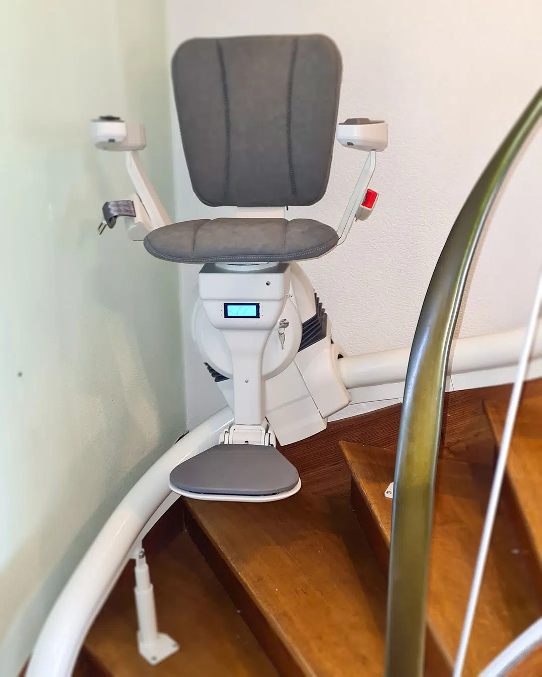 Perfekt an die Treppe angepasst, sorgt dieser Lift für mehr Sicherheit und Selbstständigkeit im eigenen Zuhause.